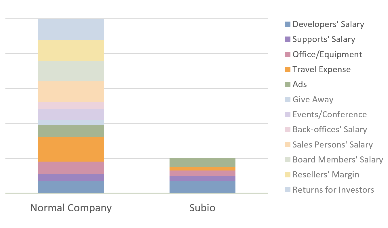 We are proud of our stock owners, who are ordinary people like ourselves, users and those who are resonated with our vision, and who are not VCs or professional investors pursuing capital gain. They want Subio be a sustainable company to provide good products and services stably and reasonably as long as customers need.