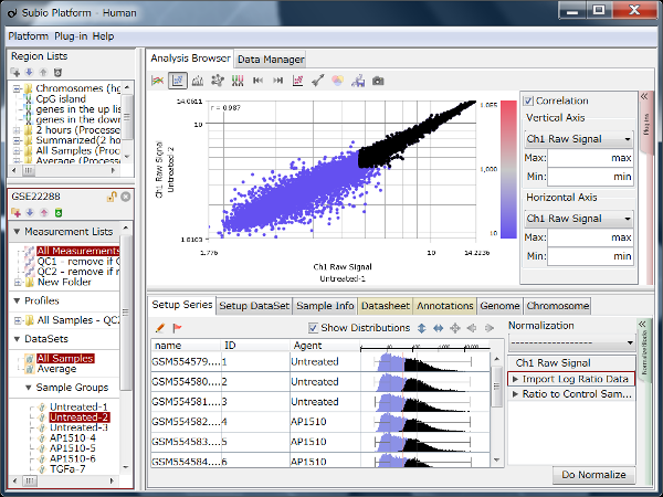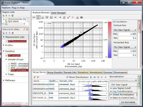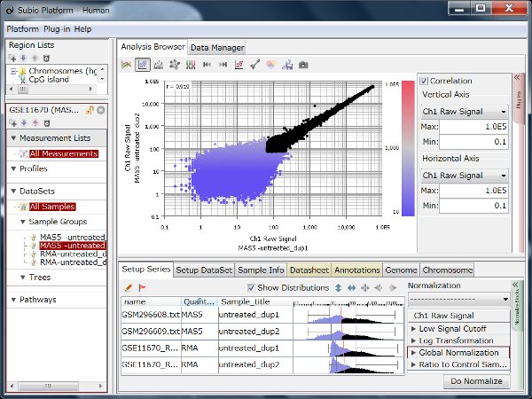 Fig11 shows a scatterplot visualization of the count values from a pair of repeated samples with different numbers of reads from the GEO database. As expected, you can see how the dynamic range expands as the number of leads increases. And here's a little more detailed summary Fig12.