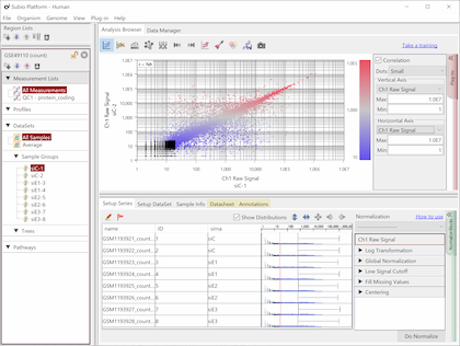 The wider the dynamic range, the more genes will come into the signal range. The number of genes shown in the table is a rough guide to the number of genes in the signal range since the number varies depending on the filtering criterion.