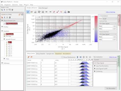 Fig10 shows the same data as Fig9, but the values are TPM. The black dots represent the corresponding genes of noise as Fig9. You see that the noise spreads diagonally and is indistinguishable from the genes in the signal range. However, there is no measurement system having no noise.
